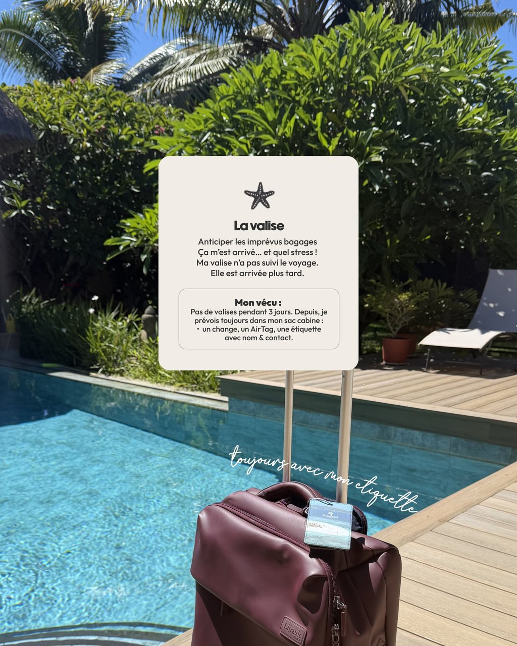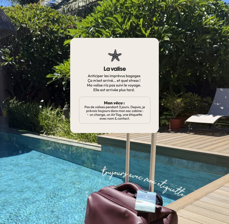Ça m’est arrivé… et quel stress. Ma valise n’a pas suivi le voyage, elle est arrivée plus tard. Quand tu débarques à destination sans tes affaires, il faut improviser : acheter l’essentiel, revoir ses plans, accepter de lâcher prise.