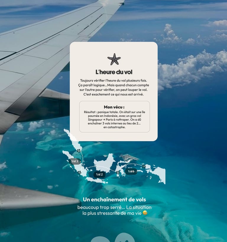 J’étais sur une petite île en Indonésie, avec un enchaînement de vols très serré.