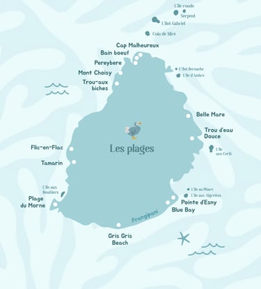 Je l’ai créée pour donner une vue d’ensemble de l’île Maurice, mais surtout pour montrer à quel point les plages sont différentes selon les régions.