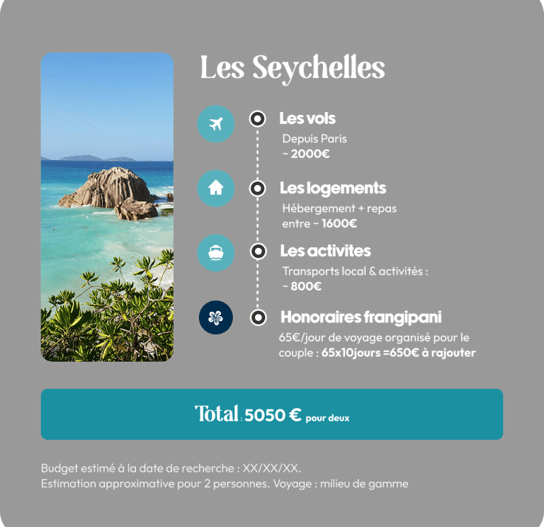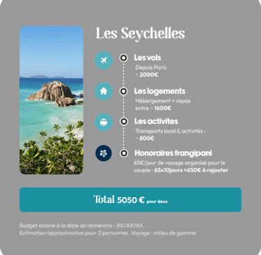 Avec moi, tout est transparent ! Voici un exemple d'estimation gratuite que vous recevrez avant de construire ensemble votre voyage